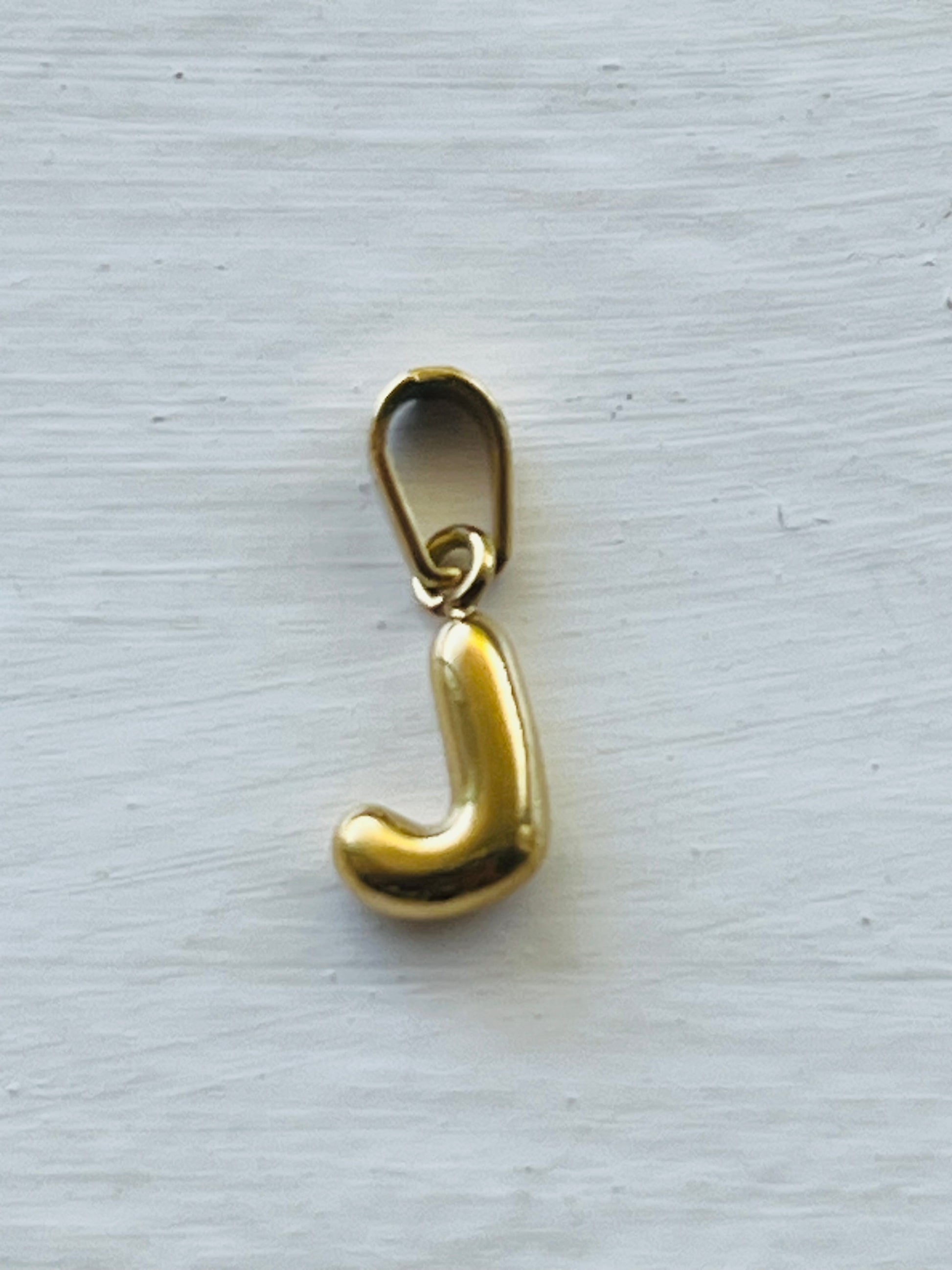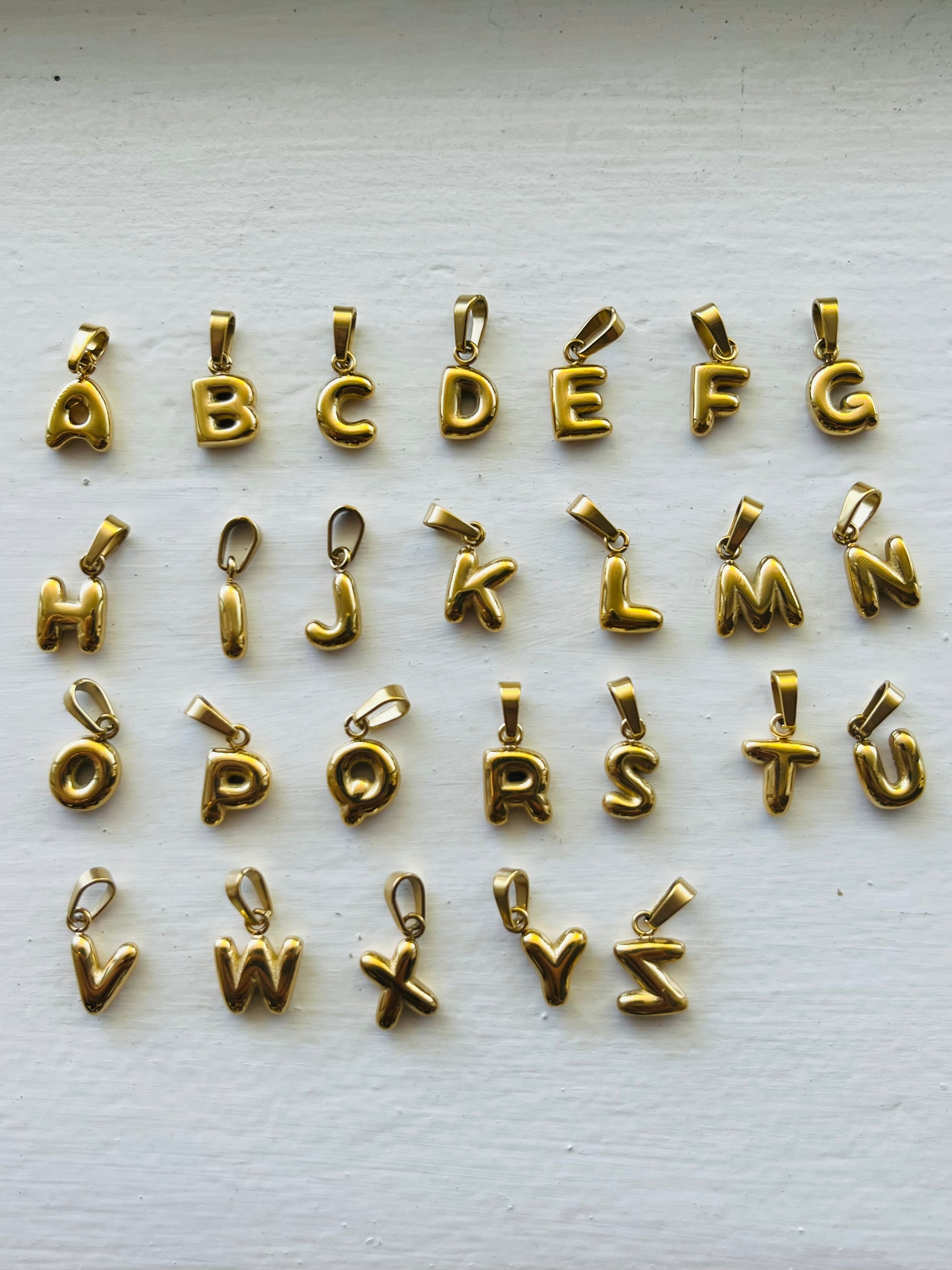 Bubble letters are a cute and popular charm trend. Our letters are 18 k gold PVD plated surgical stainless steel and attached to a pendant clasp. They are waterproof and tarnish proof and look great on a chain by themselves, or with other charms.