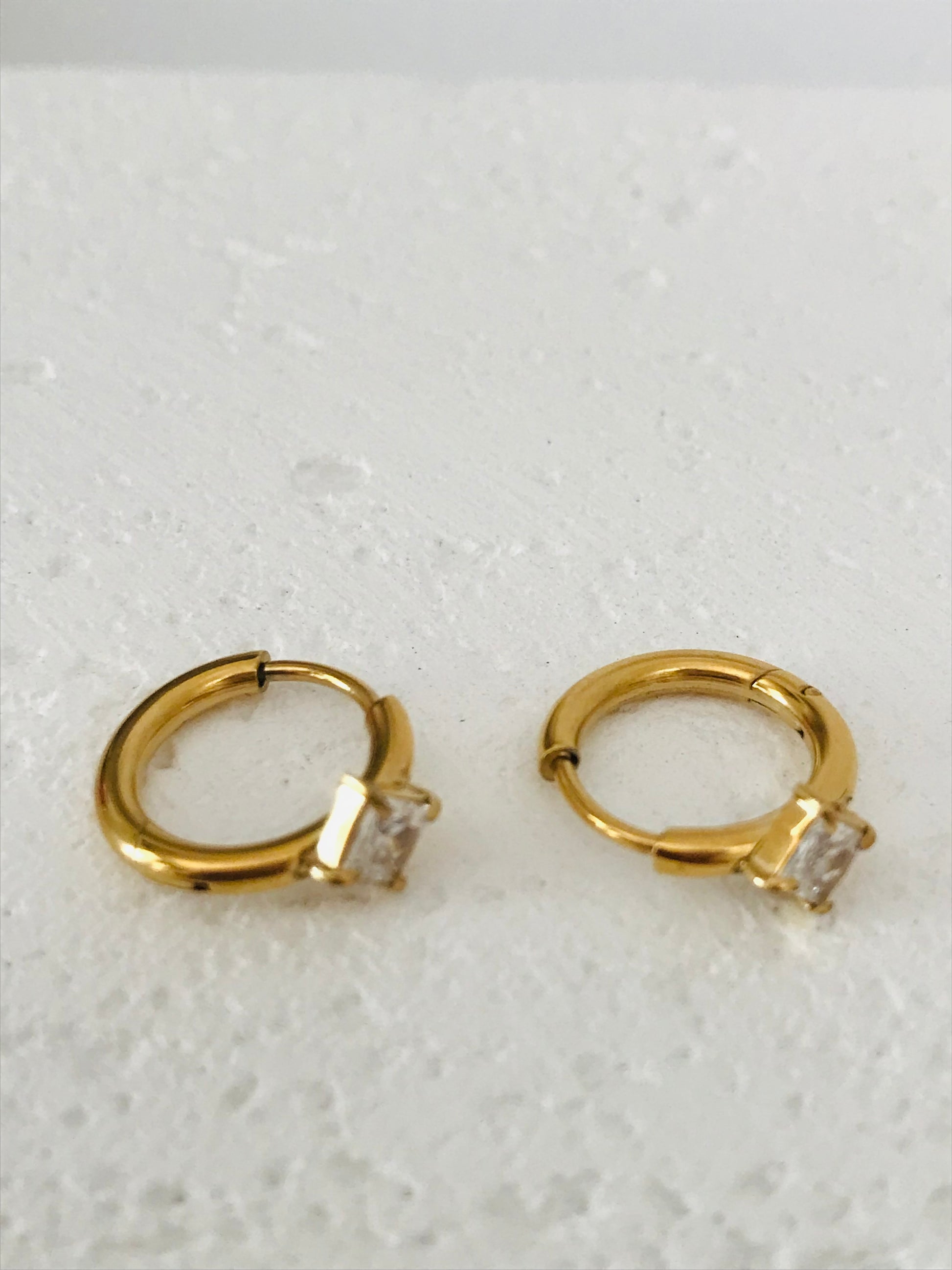 Daphne is a classic pair of huggie earrings with an inlaid cubic zirconia. Waterproof and tarnish proof you can take her anywhere and wear with anything for extra sparkle and glamour. These earrings are also great for stacking.