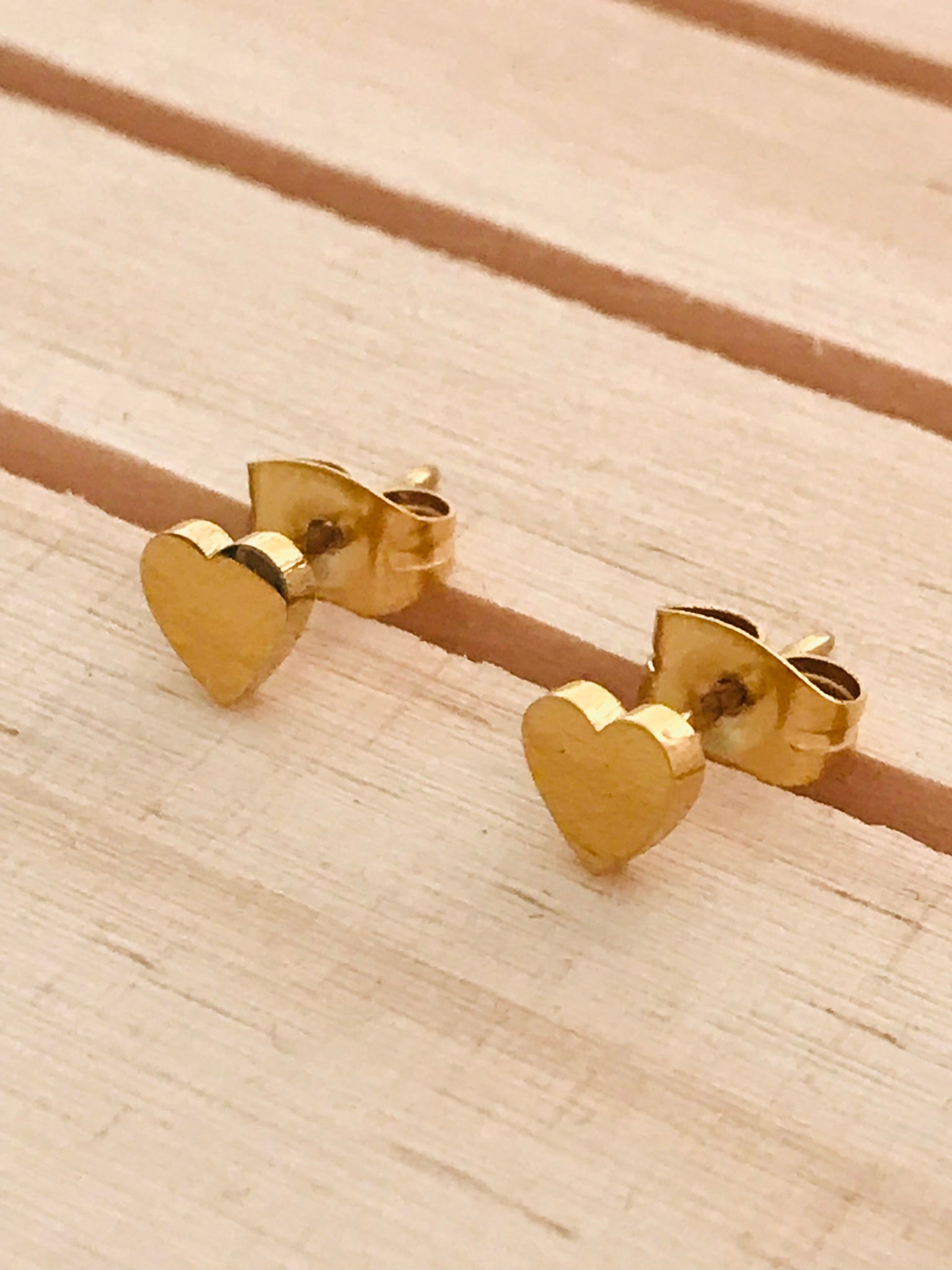 Heart shaped gold stud earrings