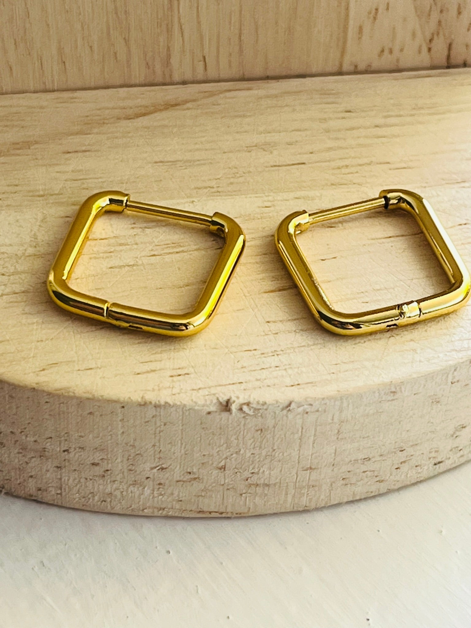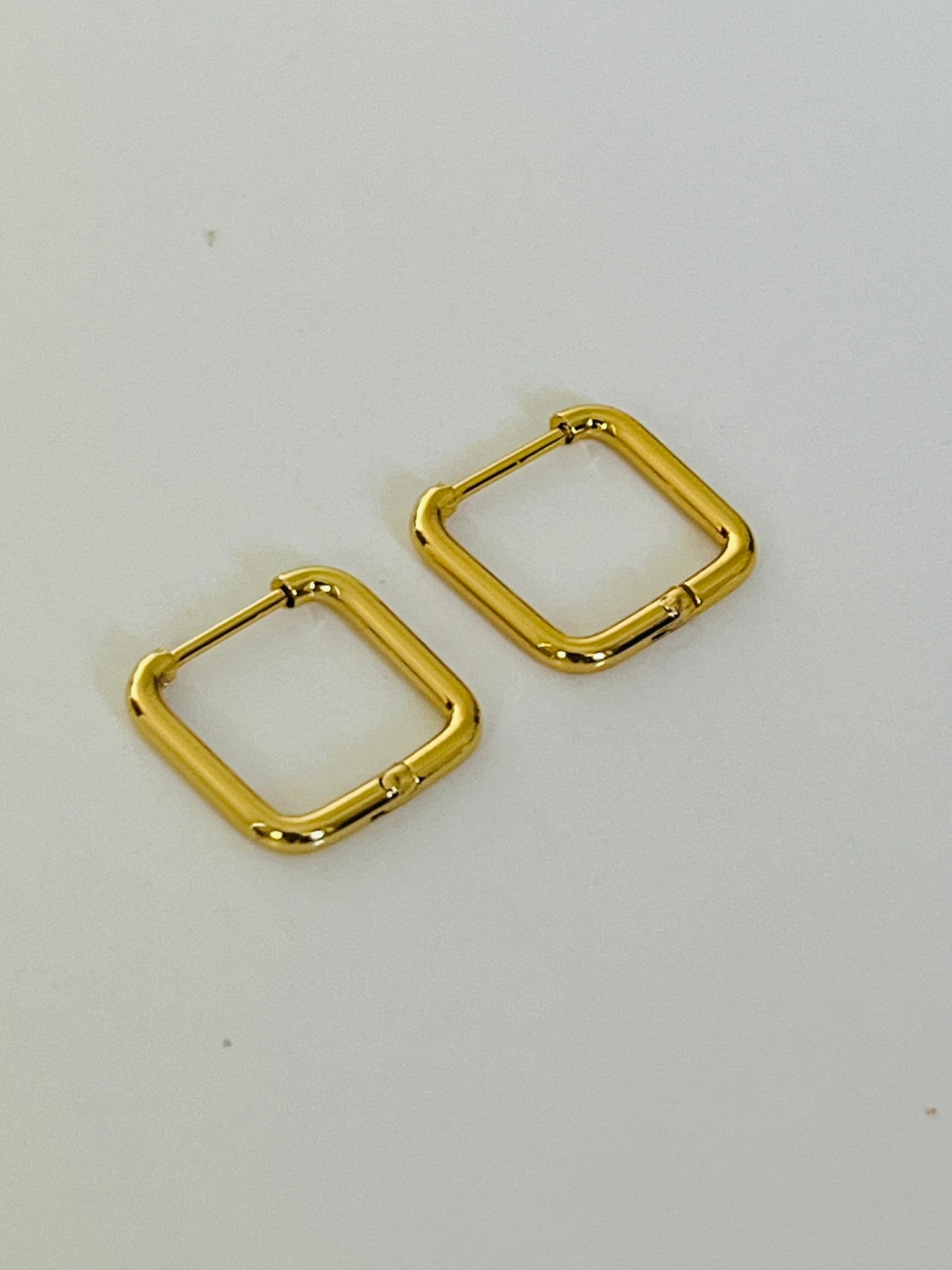 The hoops are made from 18 k gold PVD plated stainless steel and is versatile and durable, tarnish proof and waterproof.