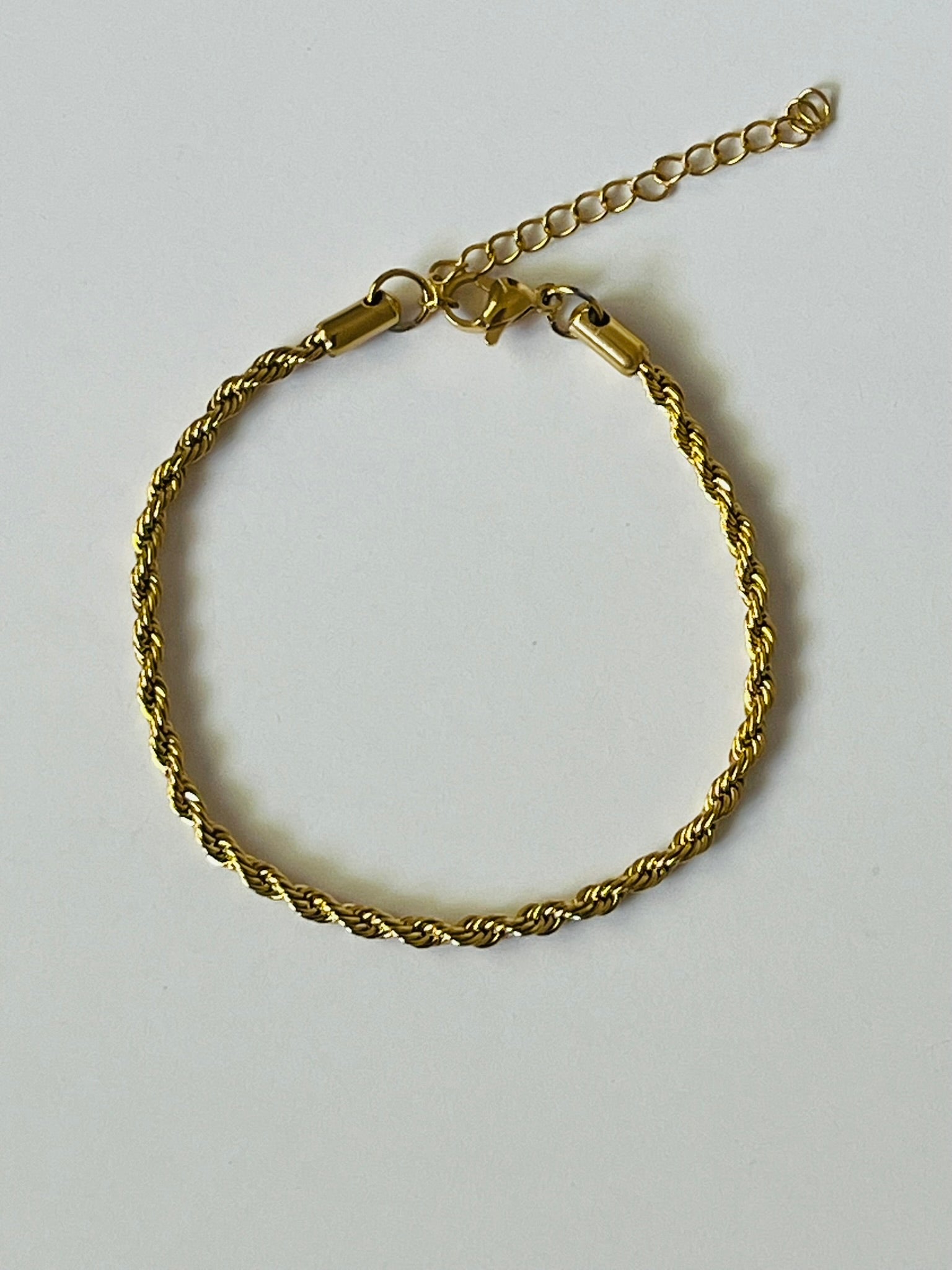 Piper is a classic bracelet in the French rope twisted chain style. The twisted bracelet is solid and durable and can be worn on its own or with charms.
