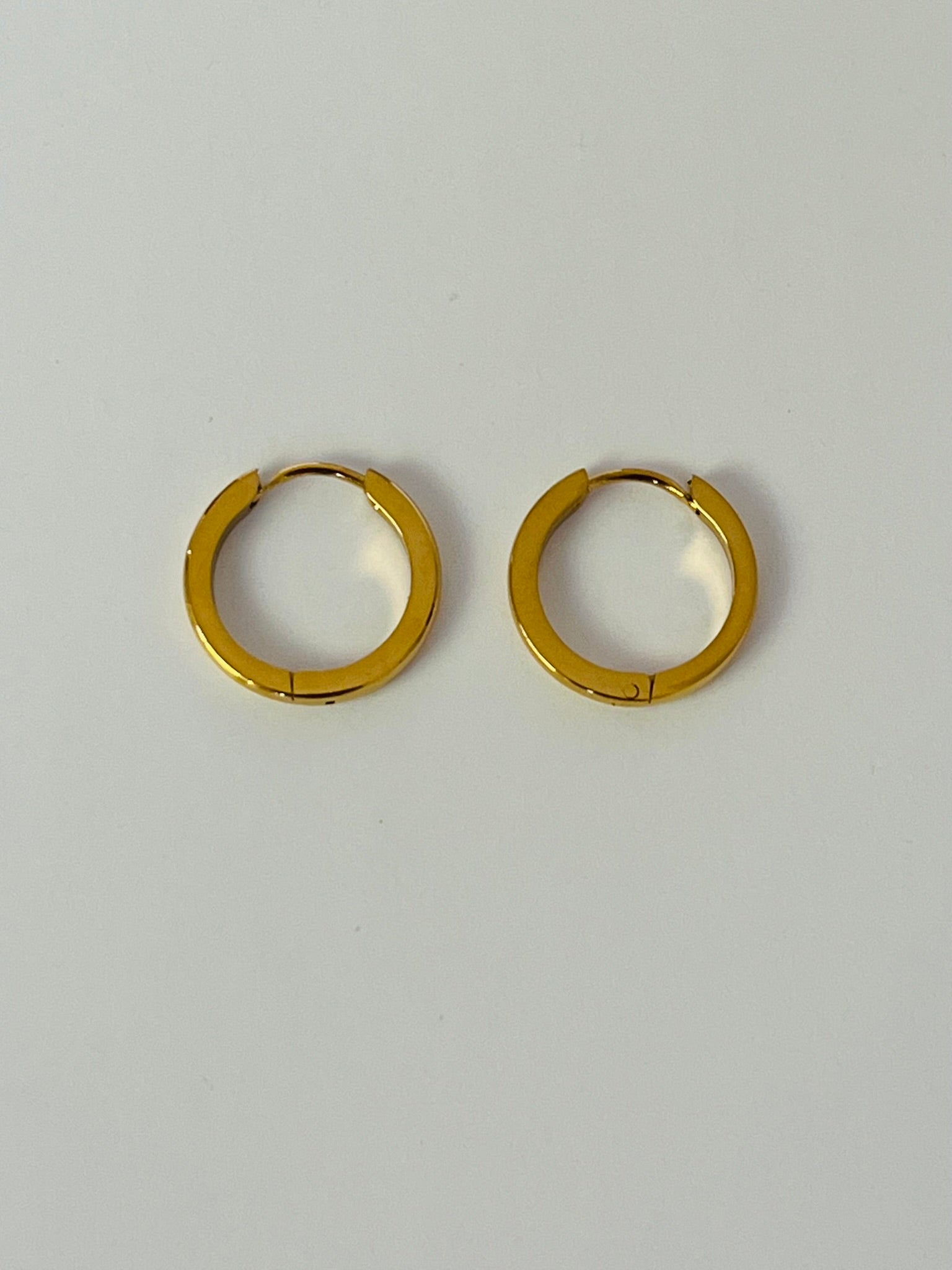 The hoop earrings are made from 18 k gold PVD plated stainless steel and is versatile and durable, tarnish proof and waterproof.