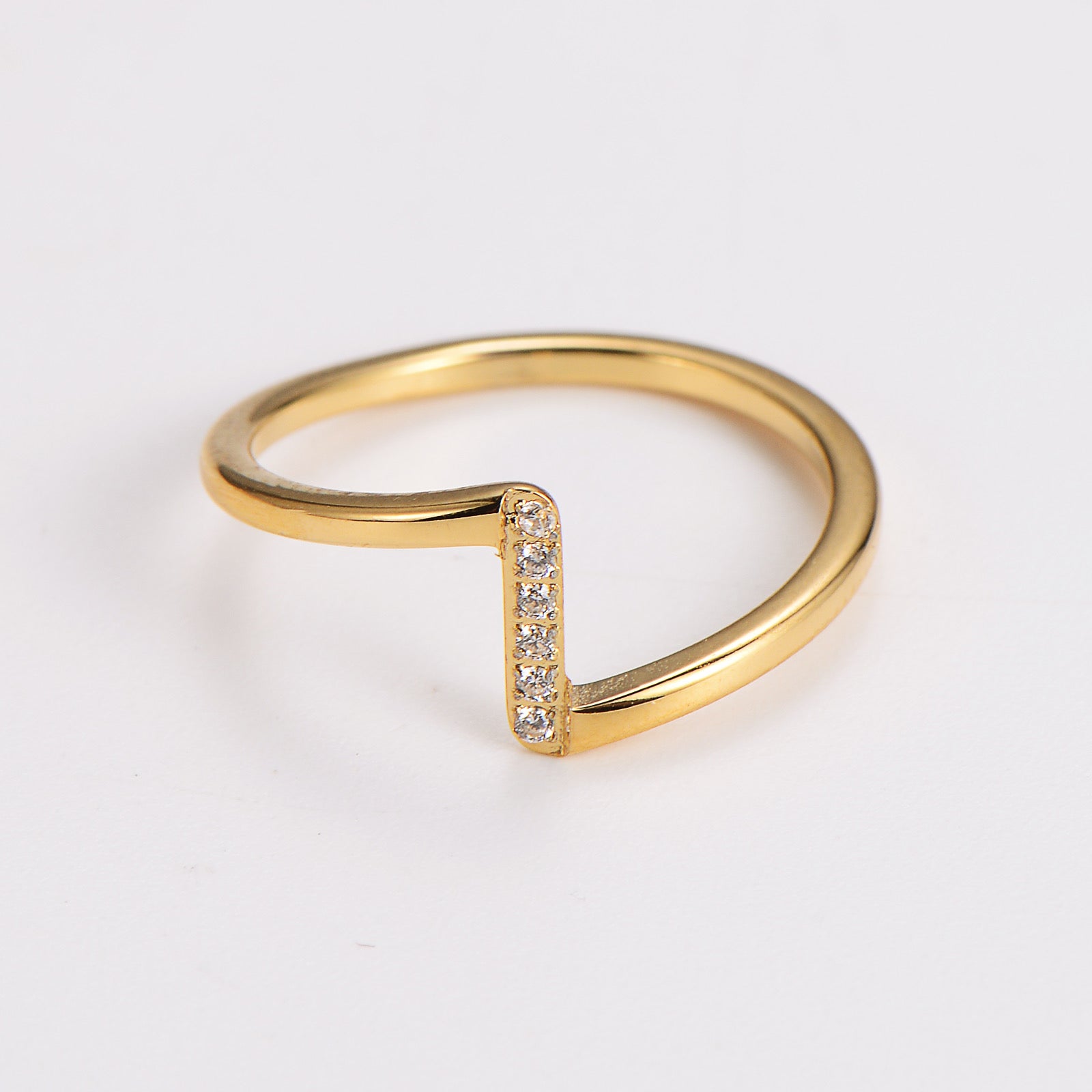 With its beautiful and minimalist design, the Zina gold ring is perfect for everyday wear or to create an interesting effect on your hands. Pair with other rings and a bracelet stack. 18 k gold plated stainless steel makes this ring waterproof and tarnish proof, so keep it on, night and day.